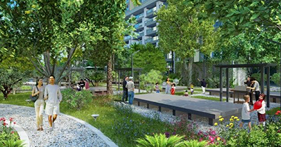 The project consists of 2 high-rise and low-rise areas